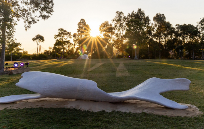 Held is a series of sculptural works designed by Yuwaalaraay Wirringgaa and Designer Lucy Simpson. Four forms designed to honour land, sky and sea Country from across each of the four pillars, in a grounded moment of convergence.