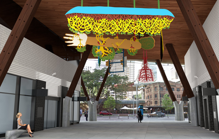 As you move through one of Barangaroo’s busiest walkways, this dreamlike canopy offers a moment of contemplation and quiet wonder, transforming a familiar public space into a landscape of imagination and reflection.