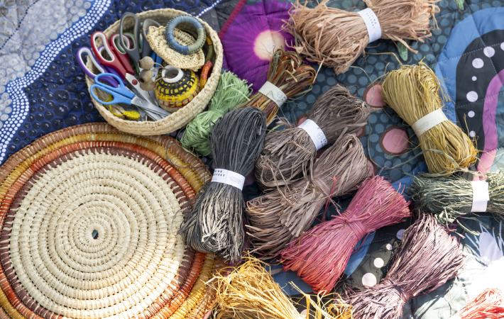 Connecting with community through the shared experience of this traditional craft, our workshops led by the incredible women of Ngumpie Weaving, offer a blend of practical skills and cultural insights.